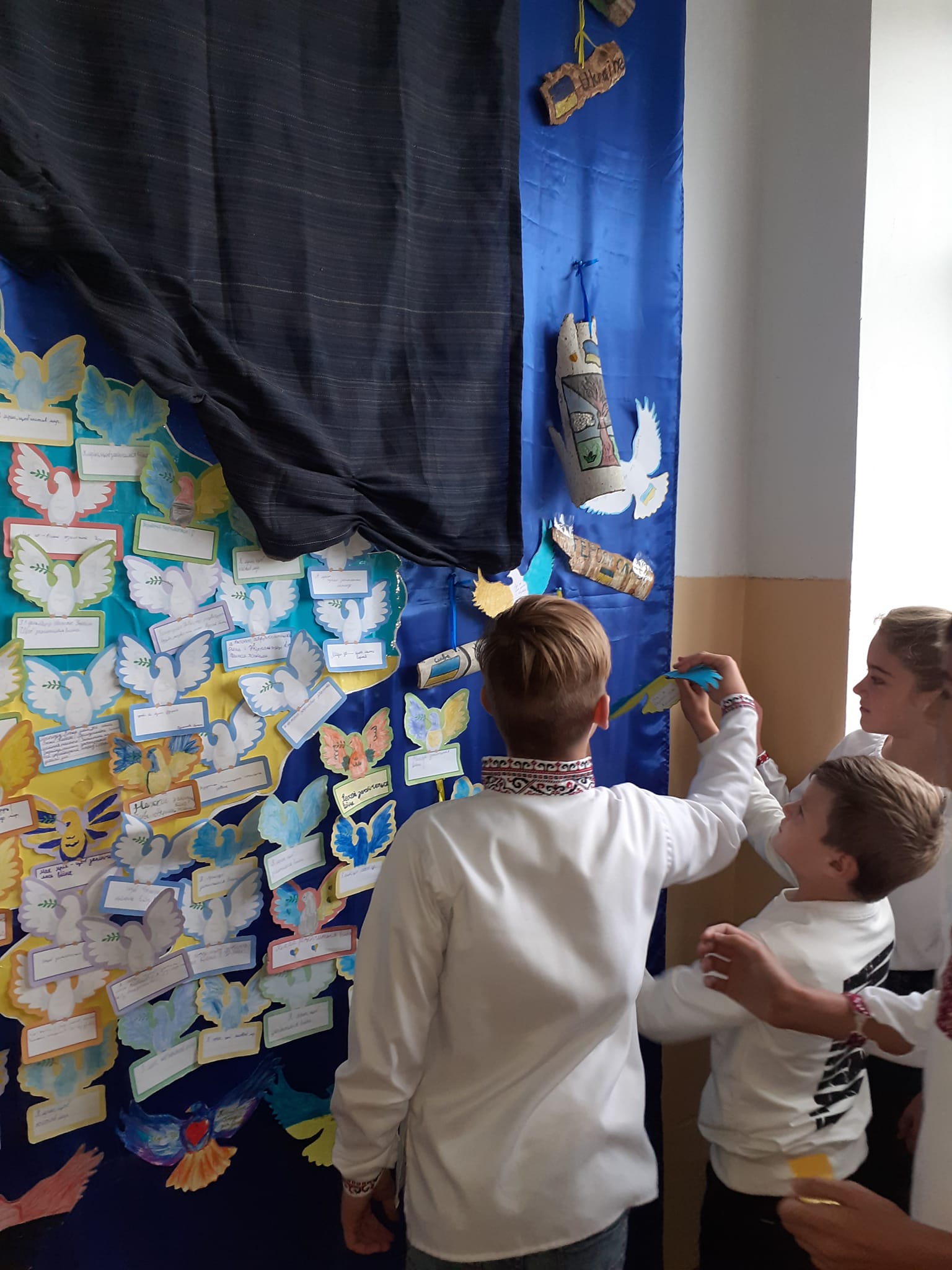 Учні та вчителі #НИЖНЬОСТРУТИНСЬКОГО_ЛІЦЕЮ приєдналися до проведення Всеукраїнської акції «ГОЛУБ МИРУ», де прикріплювали символічних голубів до СТІНИ МИРУ. На кожному паперовому голубі школярі записали свої побажання Україні, мрії про майбутнє під МИРНИМ НЕБОМ, поділилися своїми асоціаціями про МИР, висловили прохання зберегти МИР і СПОКІЙ в Україні, бо хочуть зростати здоровими і щасливими.